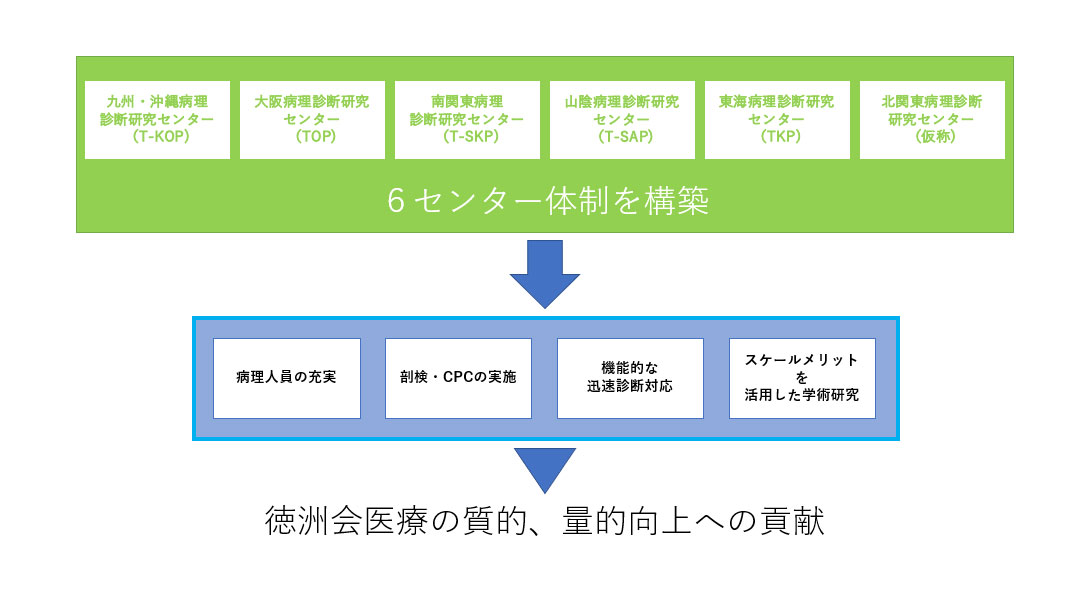 徳洲会は全国の6カ所の病理センター開設を通じて、病理業務の質的、量的な向上を目指して行きます。わが国の病理学研究、教育の拠点である大学とは連携する一方で、大学の壁を越えて病理医の自由に活動する場を創り出し、拡大して行きたいと考えています。徳洲会病理部会は学術面での貢献を通じてわが国のがん医療を積極的に推進して行きます。多くの病理関係者の参加を歓迎します。